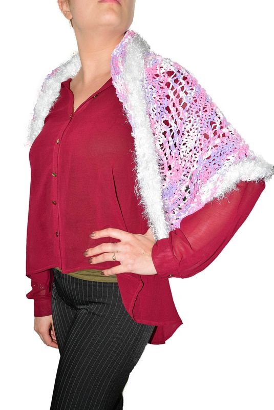 Xale Rosa Mesclado com lâ tipo Pluma.